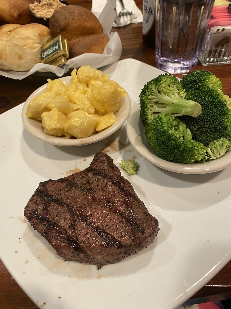 Angus Branch Steakhouse, located in Monett, MO, is a comforting haven for steak lovers and those seeking traditional yet delicious meals. With a variety of amenities such as outdoor seating, a full bar, and even Wi-Fi, this steakhouse caters to a range of preferences. Customers rave about the homemade yeast dinner rolls, smothered fries, and loaded baked potatoes. The real salad bar, complete with pasta salads and multiple dressing options, is a standout feature that sets Angus Branch Steakhouse apart. The friendly and accommodating staff, like server Whitney and Grace, add to the warm and welcoming atmosphere. Whether you're dining solo, with a group, or with kids, this steakhouse promises a satisfying and memorable experience. Your taste buds will thank you after a visit to Angus Branch Steakhouse!